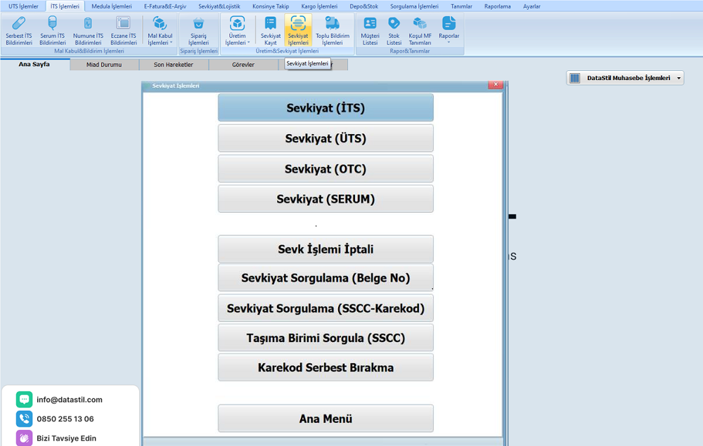 Okutma ekranına geçildiğinde, eğer yapılan işlem Sevkiyat ÜTS' ye (Ürün Takip Sistemi) aitse, Sevkiyat İşlemleri kısmı seçilir.