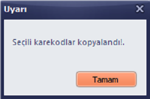 Listedeki Karekodlara Karekod (Data Matrix) Yazdır : Listedeki karekodlara etiket yazdırma işlemi yapılır.