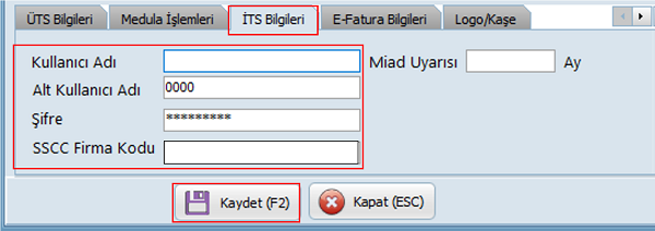 Kullanıcının İTS sistemine giriş yapabilmesi için gerekli olan kullanıcı adı ve şifre bilgilerini içerir. Bu bilgiler, kullanıcıların İTS portalına entegre olarak İTS bildirim işlemlerini gerçekleştirmelerine olanak tanır.