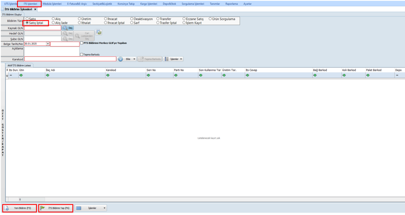 Serbest İTS Bildirimi Ekranında 'Satış İptali' Nasıl Yapılır