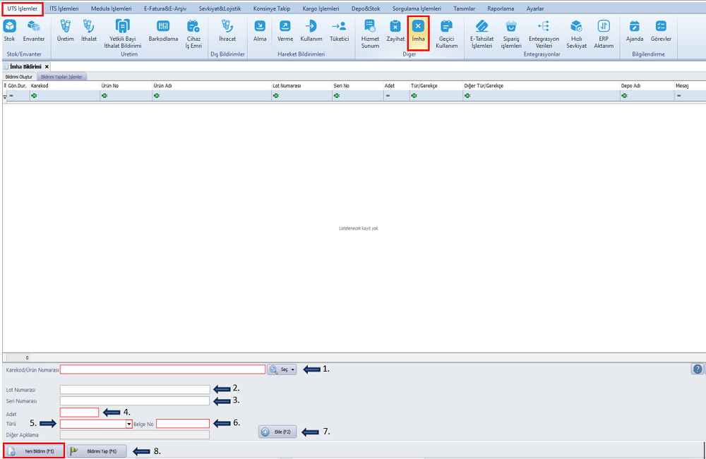 - Bildirim Adedi: İmha bildirimi yapılacak ürün adedi belirtilir.