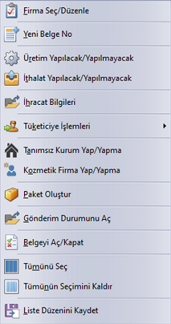 - Tümünü Seç : Listedeki bütün faturaları seçer.
