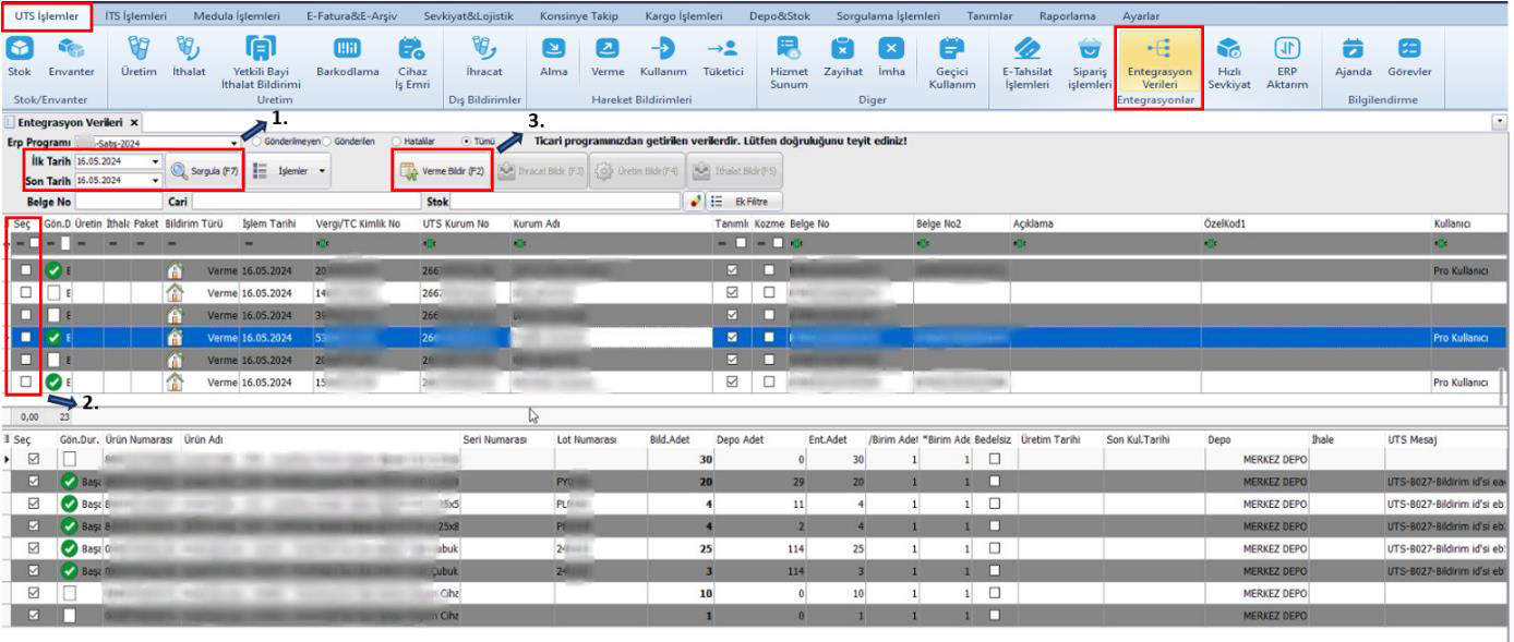 Entegrasyon Ekranında Verme Bildirimi Yapmak İçin:
