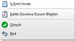 Onayla: iş emrinin mevcut durumunu onaylamak ve bir sonraki aşamaya geçişini sağlamak için kullanılır. Bu işlem, iş emrinin uygunluğunun teyit edilmesiyle tamamlanır ve sürecin devamlılığı garanti altına alınır.