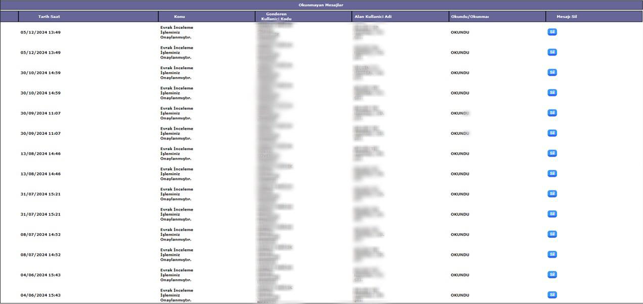 Okunmamış Mesajlar: Okunmamış mesaj sayısı ekranın sağ tarafında görüntülenebilir. Okunmamış mesajlar detaylı şekilde incelenebilir veya istenmeyen mesajlar silinebilir.