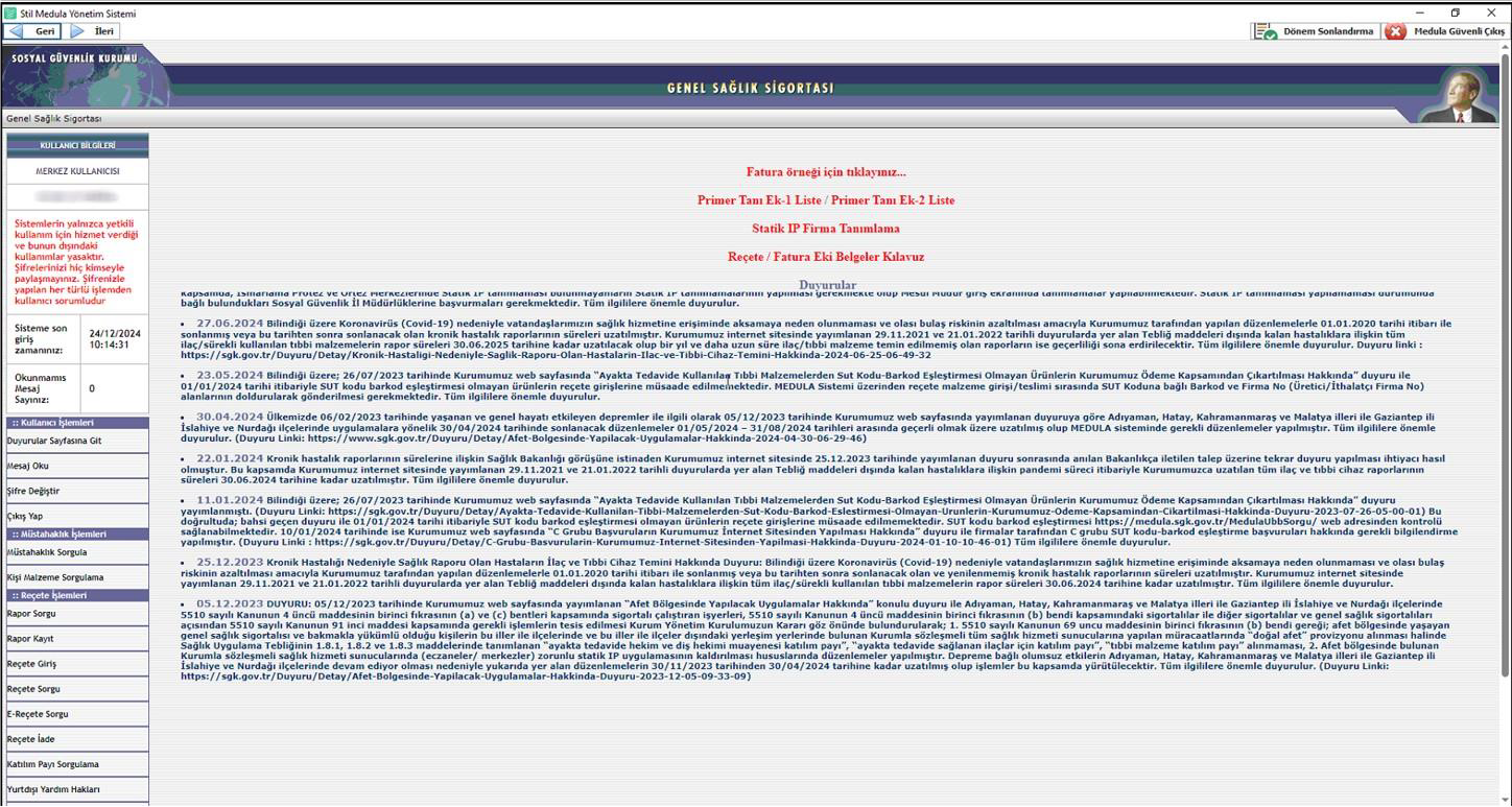- Duyurular Sayfasına Git: Medula sistemiyle ilgili güncel duyurulara erişim sağlar.