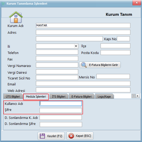 Medula işlemleri kısmı, kullanıcının Medula sistemine giriş yapabilmesi için gerekli olan kullanıcı adı ve şifre bilgilerini içerir. Bu bilgiler, kullanıcıların Medula portalına erişim sağlayarak, sağlık hizmetlerine ilişkin işlemleri gerçekleştirmelerine olanak tanır.