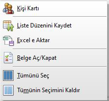 - Kişi Kartı: Seçili kişinin detaylı bilgilerini içeren kişi kartını açar.