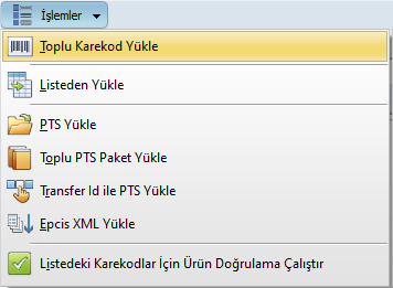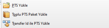“İşlemler” alanında bulunan "PTS Yükle", "Toplu PTS Yükle" ve "Transfer ID ile PTS Yükle" seçenekleri kullanıldığında, sistem, programın kurulu olduğu dizinde açılır.
