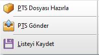 - PTS Dosyası Gönder: Hazırlanan dosyanın karşı tarafa iletilmesi ve işlemin belgelenmesi için bu seçenek kullanılır.