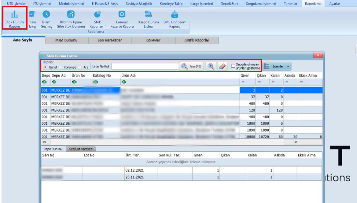 - Belirli bir depo seçimi yapılarak sadece ilgili deponun stok durumu incelenebilir.