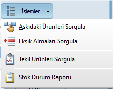 İşlemler Menüsü: