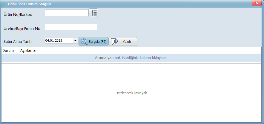 - Sorgula: "Sorgula" butonuna basılarak işlem tamamlanır.