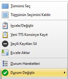 - Yeni TTS Konsinye Kayıt: Boş bir alana sağ tıklanarak "Yeni TTS Konsinye Kayıt" seçilir.