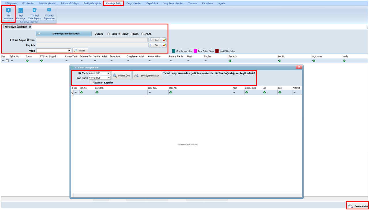 - TTS Ad Soyadı: Konsinye işlemi gerçekleştiren yetkili kullanıcının adı ve soyadı seçilir.
