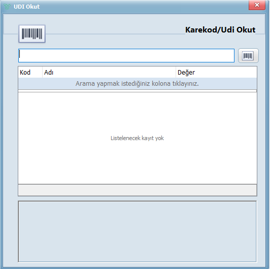 UDI Okut Barkod okuyucu ile barkod okutulduğunda, ilgili ürüne ait tüm bilgiler ekranda görüntülenir.